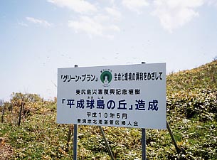 ■平成球島の丘 奥尻の西海岸から賽の河原に行く途中、球浦開拓から稲穂に至る道を右に折れたところに球島の丘があります。宮津からも道路があり狭いながらも舗装されているので比較的簡単に行くことができるでしょう。