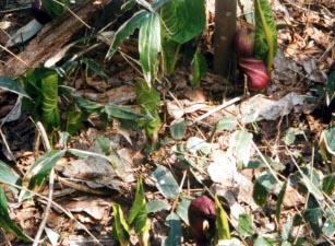 ■ザゼンソウ水芭蕉の群落の中にはザゼンソウも。 この雲雀ヶ丘の公園の脇にパターゴルフ場があり、地元の人で天気のいい日は賑わっています。地元の人が来ていないときは車がありません。そんな時はちょっとした休憩場所としてもいいかもしれません。