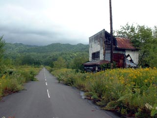 ■大夕張駅前通り大夕張の駅前通りは手前にあった建物がさらに取り壊されついに残る建物は一軒になりました。大きな都市だった大夕張に残る建物がにここだけになったという事実は感慨深いものがありました。なぜこの建物だけが取り壊しを免れているのでしょうか。建物は廃屋状態であっても個人の所有であった場合勝手に壊すことはできません。その辺りの事情が絡んでいるのかもしれません。