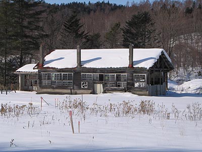 国道274号線を福山大橋にて北に折れ5km程先に行った場所に長和小中学校です。石勝線がさらにそのすぐ北側を通り、高速道路の工事がせわしく行われていて、将来はインターチェンジもできる予定です。しかしながらこの地は今では住む人は本当にわずかなのです。写真の校舎は平成20年2月の状況でかつてはこの3倍の長さがありました。中学校は昭和43年、小学校は昭和51年に閉校となり、その後養羊場として使用されました。その時の名残が校舎の壁面に取り付けられた扇風機で訪問時にはカラカラと音が谷に響いていてとても印象的でした。今では校舎の大半は取り壊され羊の姿もなくなりました。
