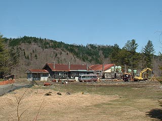 写真左は平成16年4月の状況で校舎の取り壊し真っ最中のもの。取り壊された部分の煙突が何とかまだ立っていました。写真右は平成20年2月に近くに寄って撮影したもの。いつ取り壊されたり、倒壊したりするかもしれない風前の灯の校舎は多くの人を惹きつけます。
