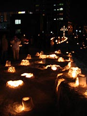 手宮線会場は昭和60年に廃止になった旧国鉄手宮線の跡地の散策路を利用しています。細長い路地に様々なアイデアの光のオブジェが点在していて楽しみながら歩くことができます。小樽運河会場より混雑は若干控えめです。