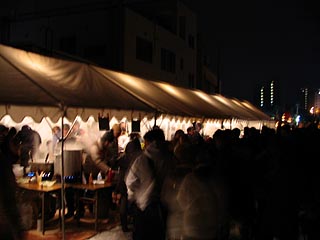 スノートンネルのさらに南側には「湯気のおもてなし」と銘打って屋台があり食事もすることが可能です。ビストロ建築士会では鉄砲汁、焼きそばなどを提供。