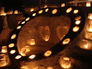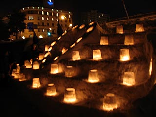 小樽運河の歩道に並ぶ光のオブジェは官公庁、学校、企業、グループなどが造ったものが並びます。創意工夫が凝らされていてなかなかおもしろい。