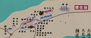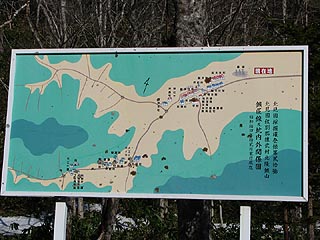 そして案内板の出現です。昭和14年12月の集落の配置が記されていました。案内板は一部が錆びていて古く行先案内の設置より前からあるものの様でした。