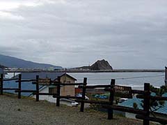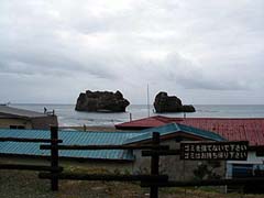 様似市街の西の海岸線には幾つかの岩山、岩の島が連なります。その代表的なものがこの親子岩。大きい岩とそれよりもひとまわり小さい岩が二つ並んでいるのです。国道336号沿いに車を停めるスペースがあり、そこが親子岩展望台と名付けられた場所なのです。国道自体は若干標高の高い所を通っているため周囲を見渡せるのはいいのですがまだ様似市街の中にあるため直下に家が立ち並び展望台という雰囲気はほとんど残念ながらないのです。これでは単なる国道沿いの休憩スペースに過ぎない感じです。
