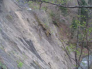 パンケホロカユウパロ川を遡っていくとガレ場に到達。車の通行はとてもできる状況ではありませんでしたが奥には無人の車もあり驚かされました。
