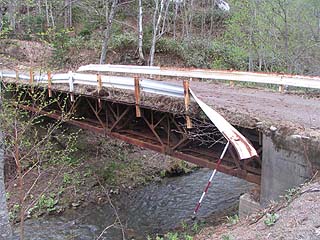 林道に戻り進んだ先にある橋は重溝桁鉄道橋です。森林鉄道の廃止後の転用されたものと思われますが、レールが並ぶ姿が壮観でした。