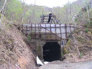 埋もれた坑口。