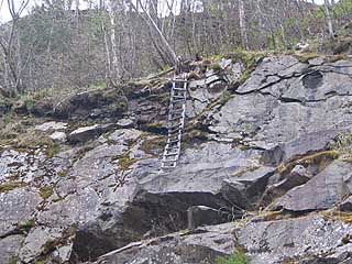 上を見上げると何故こんなところにと思うような場所に梯子が掛けられていました。