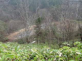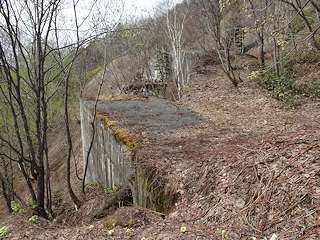 遠幌から北上して辿り着いた奥部第三立坑の敷地は林道の崖下にありました。