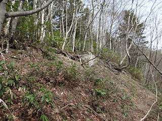 分水嶺付近から下り、林班図に記されていた巻座も訪問しました。遥か山を見渡す巻座からはかつてこの地に炭鉱の施設があったことをわずかに教えてくれます。