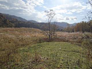 さらに林道を南に進み分水嶺を越え、遠幌加別川の上流域に達し、廃道になったつづら折れの林道を下ると奥部第一、第二立坑のあった見渡す限りのすすき野原に辿り着きました。