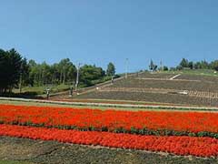 中富良野駅から0.7km程の北星山にあるラベンダー園です。冬期はスキー場として利用されていて、その斜面にラベンダーが栽培されています。ファーム富田にも近く、多くの観光客はそちらに流れてしまいますが、リフトでラベンダー園の上まで行くことができるという利点もあり、立ち寄る選択肢に加えるのもいいでしょう。ラベンダーの季節が終わると逆に駐車場に近い花壇の花が咲き乱れます。ベンチの横には平成7年に登場した中富良野町イメージキャラクター「ラベンダーの妖精」がいました。ラベンダーの妖精は中富良野町内ではあちこちで見かけます。