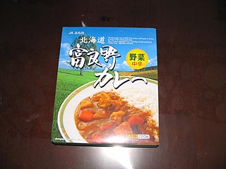 近くのスーパーで買ってきた商品です。千歳空港の土産店でも見かけました。富良野産の野菜がたくさん入った商品でじゃがいも、にんじん、たまねぎを中に確かめることができます。中辛と書いてありますが、中辛以上の辛さがを私は感じました。ビーフ(辛口)、チキン(辛口)もあり。 富良野カレー8個セット(楽天)