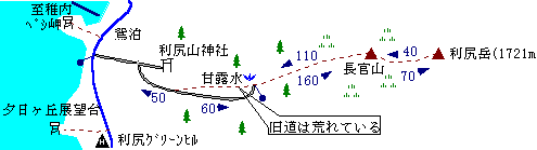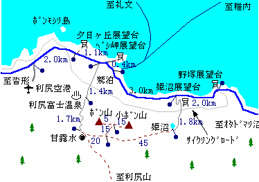 利尻富士を登らない人はこんな遊歩道を歩いてみるのもいいのではないでしょうか。 標高444mのポン山、小ポン山、甘露水、姫沼を結びます。 ポン山からは鴛泊の港を眼下に望め昼食スポットとしていいかも。