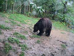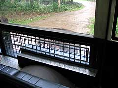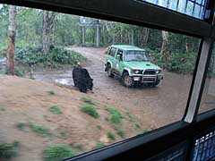 園内に入ると早速熊が出現。バスは金網が付いていてもしもの時も安心です。