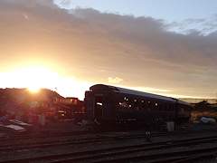 北斗星の車輌は解体のため室蘭の崎守埠頭に711系電車に引き続き平成27年5月に運び込まれました。訪れたのは平成27年10月ということで解体作業もそれなりに進んでいる中での訪問となりました。秋の夕暮れ、夕陽に照らされた車輌は物悲しく、いつまでも眺めていたい想いに駆られました。