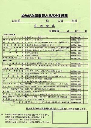 糠平温泉に泊まるともらえるのが左のぬかびら温泉郷ふるさと住民票です。住民特典があり、糠平温泉とその周辺のたくさんの施設、お店が泊まる日とその翌日に割り引かれたりします。金額にしたらわずかなものなのですがどこに行こうかなと思いをはりめぐらせるだけでも楽しいものです。温泉ではホロカ温泉(鹿ノ谷ではない方)が日帰り入浴無料(8:30〜14:00)になったり亀の子荘が350円が150円になったりします。