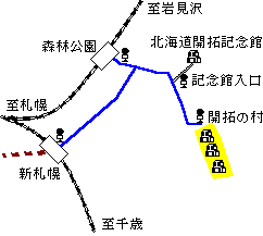 (交通:新札幌駅-バス[8分]-森林公園駅-バス[6分]-記念館入口-バス[1分]-開拓の村)