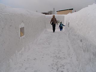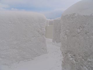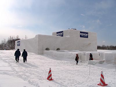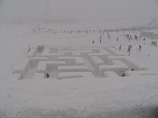 さとらんど会場の雪の大迷路は会場内のメインの遊びスポットです。ロイズの提供によるイベントで雪で作られた迷路の中を歩いて出口を目指します。