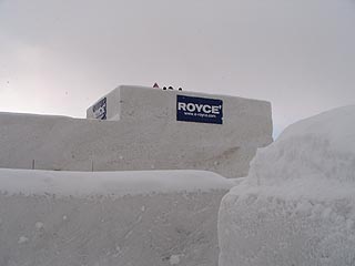 途中には展望台がありここからは迷路全体を見渡すことができます。そのため入口からはここを目指して歩いていきましょう。会場全体もざっと眺めることが可能です。展望台の周囲の雪の壁は高めに作られていました。ここを過ぎればゴールは間近です。全体に難易度はそんなに高くはありません。