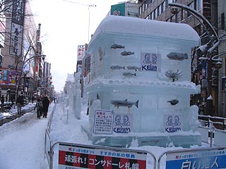 大通の南側、南4条から7条の駅前通にて開催されるイベントです。大通会場程の混雑はありませんので時間があれば立ち寄ってみるのもいいのではないでしょうか。氷像は大きいものはありませんが細かな細工は見事。夜間からライトアップされるのでその時間に訪問するのがお薦めとのこと。