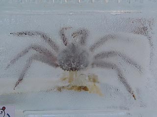 氷の中に魚が閉じ込められている氷像には驚かされます。インパクトが強いためか指を指して話に夢中になっている人がたくさんいました。カニもこのとおり。