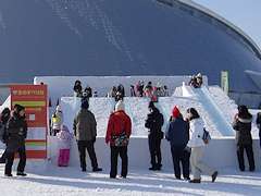 つどーむ会場の屋外イベント会場は子供が遊ぶためには最適です。開園前からたくさんの子連れの家族が並び、開園と同時にチューブスライダーを目指します。札幌在住の人なら滝野すずらん丘陵公園に行けば同様のものはありますが、市街で手軽に楽しめる利点はあるのかもしれません。
