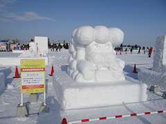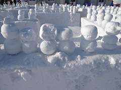 会期初日にはスノーオブジェコンテストが開催され、その雪像が並んでいました。