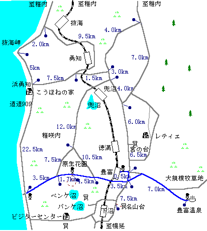 (交通:稚内-[JR45分]-豊富-[JR15分]-幌延)