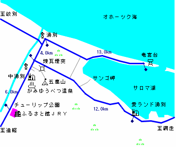 (交通:交通:網走-バス[69分]-浜佐呂間-バス[26分]-佐呂間-バス[75分]-中湧別)