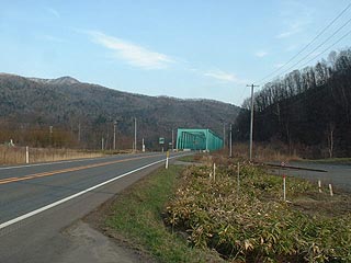上岩知志から竜門橋(写真左)を渡ると日高町に入ります。富内線は国道と平行して沙流川の深い谷を越えていましたが現在では平成9年度までに橋脚が撤去されわずかに橋台の痕跡らしきコンクリート構造物を認めるに過ぎません。そしてこの竜門橋を渡った西側にはドライブイン竜門パークがありました。平成3年の石勝樹海ロードの穂別町から日高町に至る区間が開通し国道237号は交通量が激減します。その影響によりなくなったと思われ、今はただアスファルトの舗装のみが残ります。日高竜門と呼ばれる景勝地で紅葉の名所として紹介されていますが案内等は全くありません。