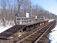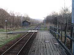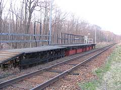 平成18年5月の廃止後の笹森駅跡。踏み切りの部分に柵が付けられていて列車がもう来ないことを教えてくれます。駅のホームは駅名票、時刻表などは撤去されていて、ただホームだけが残っているだけでした。メンテナンスもされていないためかホームはすでにくすんだ色になっていました。