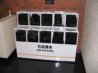 館内に入ると炭労北海道寄贈の石炭の塊の標本がありました。