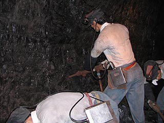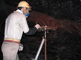 手掘採炭から発破(火薬)を使用するようになります。その火薬を入れる穴を掘る作業。