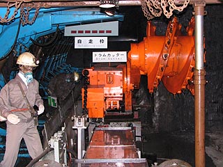 自走枠による機械採炭。採炭機械の動態展示もされています。