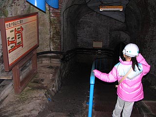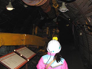 石炭博物館の本館2階からケージ(エレベーター)に乗り、地下深くに降下する雰囲気を体験し史蹟夕張砿に到着します。キャップランプを渡され坑道の中を探検することができるのです。決して暗黒の世界が広がるという訳ではありませんが雰囲気は十分に味わうことができるでしょう。実際の炭鉱の坑道が昭和29年に昭和天皇が訪問の折、模擬坑道として整備されました。