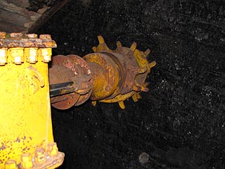 坑内には様々な採炭機械が設置されています。写真はロードヘッダー。
