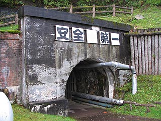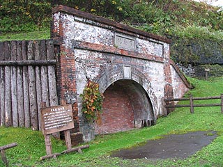 写真右は天龍坑で明治33年煉瓦造の坑口です。昭和13年のガス爆発により閉鎖されました。