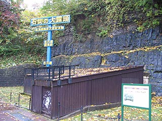 石炭の大露頭。7mの炭層が露出しています。