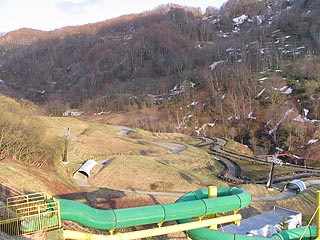ローラーリュージュは石炭の歴史村の施設の中でも後期に建設された施設で平成11年に開業しました。ローラーリュージュとはニュージーランド生まれのスポーツで坂道を車輪の付いたそりで下っていくもので、実際に体験してみるとおもしろいのかもしれません。そうはいってもリピーターを呼ぶ施設では到底ありえず、平成18年9月に閉鎖されたまま現在に至っています。日本でローラーリュージュがある施設はグリーンピアなど採算性に疑問符が付くものがほとんどでした。