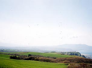 瀬棚と牧場の風景は私の心の中では全く結びつかないものでした。たまたま瀬棚を通りかかり立象山の展望台くらいは寄ってみようかと車を上らせるとだんだんと視界が開けてきました。そして左折する展望台への道を気づかず通り過ぎさらに進んでいくと暖かい雄大な牧場の風景が目に飛び込んできました。