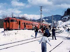 写真は不二川橋梁を渡る士幌線の気動車。橋の向こうは糠平湖です。糠平駅から国道を黒石平方面に行きトンネルをひとつ越えたところから撮影。現在この橋梁は残念ながら撤去撤去されました。 糠平駅は列車が到着する度にたくさんの人々が降り立ちました。 駅舎には特設コーナーも設置。 午前中の糠平駅のホームの様子。