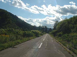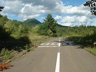 下川鉱山で象徴的な風景が横断歩道の残る旧鉱山住宅跡です。かつてこの道の両側に住宅が立ち並んでいたのです。