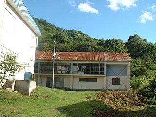 写真左は菱光小学校、平成2年閉校。写真右は菱光幼稚園、幼稚園は屋根が崩れた後、平成20年に解体されました。