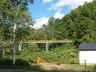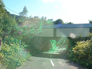 鉱業所と通洞坑を結ぶ軌道跡は屋根もついた立派なもので道道を越えていました。