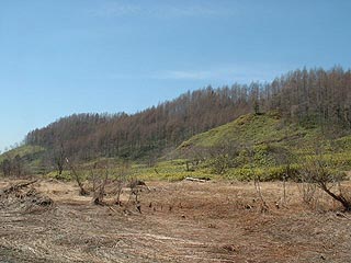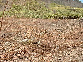 新登川炭鉱の最奥部。荒野、笹原がかつてここに炭鉱があったことを教えてくれます。私が訪問したときは盛況で他にもう一組訪問者がいました。話したところ北海道横断自動車道の工事関係の方でした。