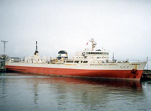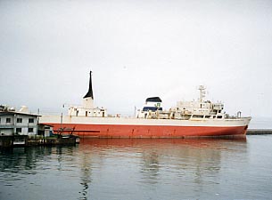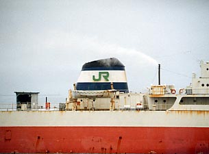 青森港に停泊中の空知丸。青函連絡船には貨物船が何隻か就航していましたが最後まで残った貨物船が空知丸でした。 桧山丸、石狩丸はこの空知丸型が改造されたものです。JRのマークを掲げた貨物船は結果として空知丸だけでした。貨物船はあっさりした船の形がとても魅力的でした。