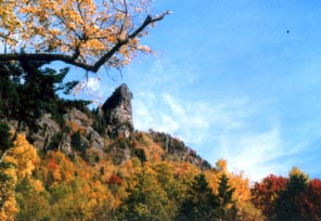 ■渓谷の紅葉 秋は北海道でも晴れの多い季節。 紅葉と青い空は本当によく似合うものです。 渓谷ですので空を見上げることになり、 普段は感じることもない空の高さも感じることができます。
